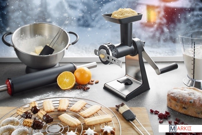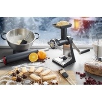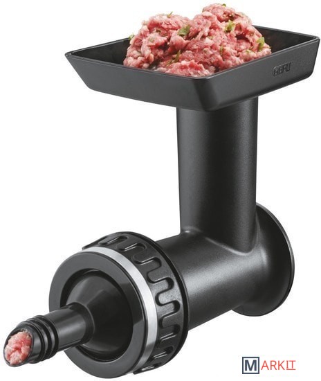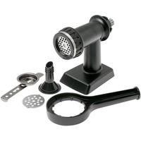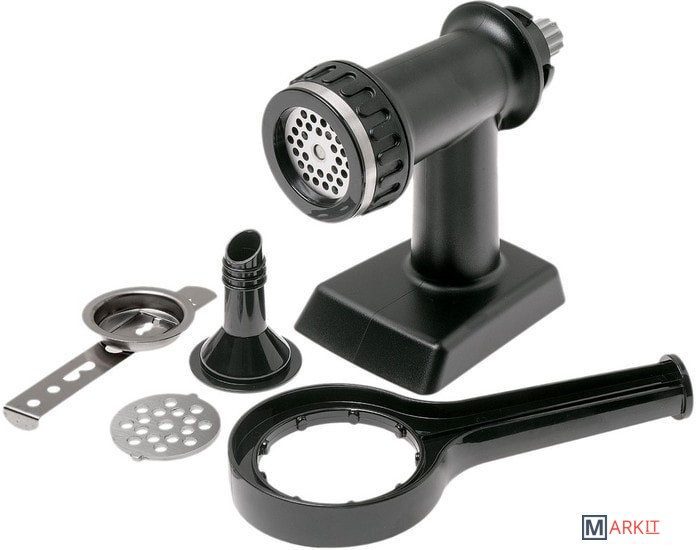 | Комплектация | - 2 перфорированных диска (грубый и мелкий) для переработки мяса, рыбы и овощей;- насадка для изготовления колбас;- насадка для выпечки с 5-ю отверстиями разной формы;- стопор/ключ для затягивания/ослабления крышки. |