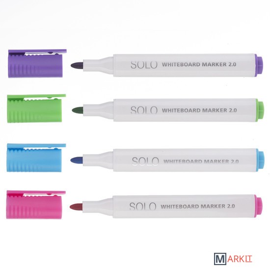 Маркеры предназначены для письма на магнитно-маркерных досках, а также на гладких непористых поверхностях. В маркерах используются высококачественные нетоксичные чернила на спиртовой основе, которые легко стираются сухой губкой для досок или сухой тканью. Цвет колпачка соответствует цвету чернил. Пишущий узел: закругленный, 2 мм. Длина пишущей линии: 900 м. Упаковка: прозрачный ПВХ-бокс.