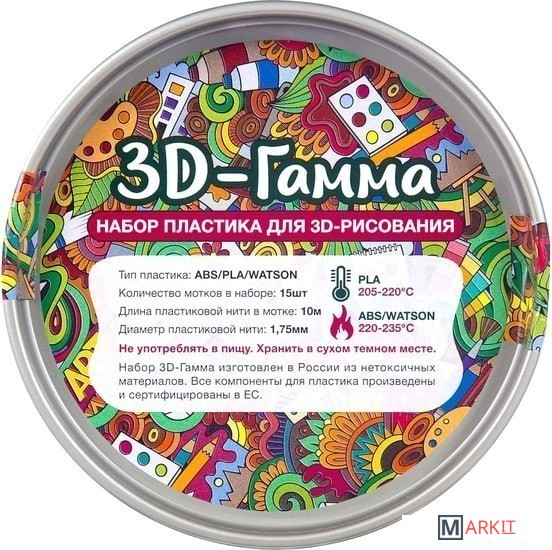 Markit » Расходные материалы для 3д принтера » Набор пластика Даджет 3D-Гамма PLA 1.75 мм