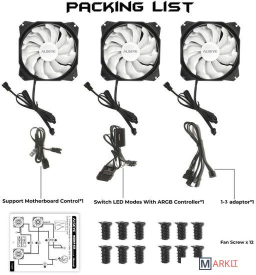 Markit » Системы охлаждения » Набор вентиляторов ALSEYE M120-P KIT