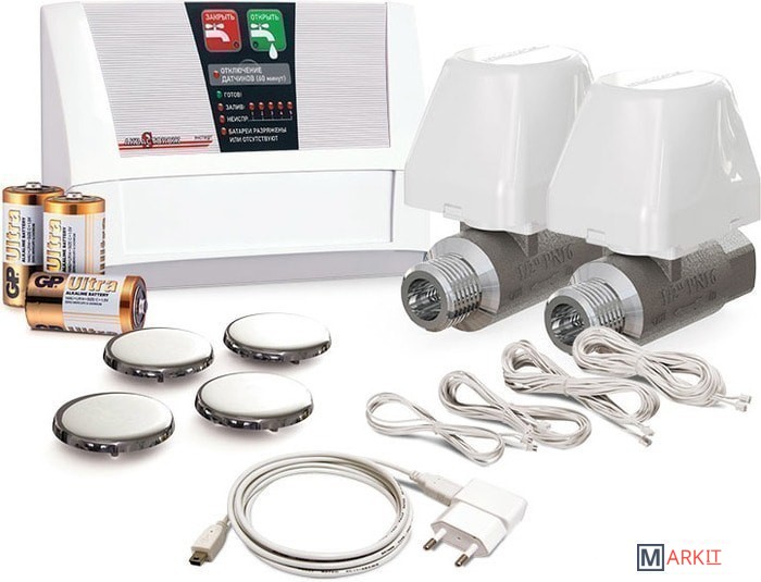 | Комплектация | 1 x Контроллер «Эксперт»2 x Шаровый электрокран 1/2"4 x Проводной датчик4 x Провода (2м, 4м, 6м, 10м)3 x Батарейки LR14 |