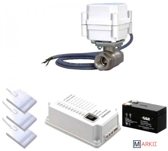 Комплект Gidrоlock Premium Bugatti 3/4" (1 электропривод) служит для своевременного оповещения в случае появления протечки воды, а также автоматически перекрывает подачу воды при помощи шаровых электроприводов (идут в комплекте).