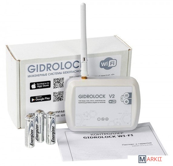 | Комплектация | Блок управления Gidrolock WIFI V2 - 1 штШЭП WINNER BUGATTI 3/4" - 2 штДатчик протечки воды WSP (3 м) - 3 штШлейф - 1 штСетевой адаптер (220V-12V-1.5A) - 1 штБатарейки |