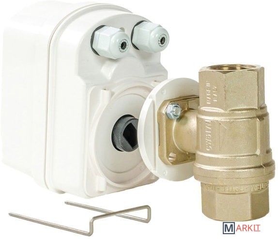 Комплект Gidrоlock Winner Bugatti 1/2" (2 электропривода) служит для своевременного оповещения в случае появления протечки воды, а также автоматически перекрывает подачу воды при помощи шаровых электроприводов (идут в комплекте).