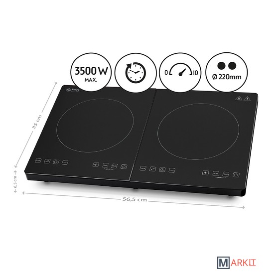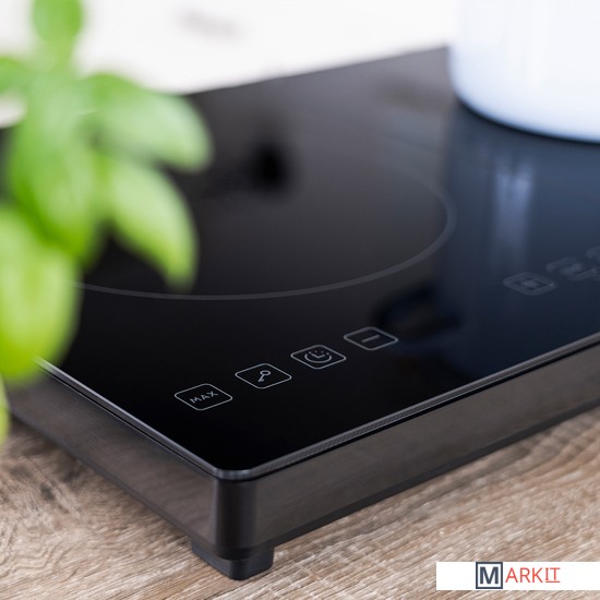 Распределение мощности, на одну конфорку макс. до 2000 Вт.Длина шнура: 1.5 мУровень шума < 55 дБ