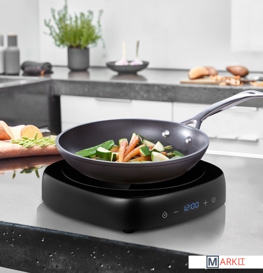 Индукционная плитка Kitfort KT-137 практична и экономична.Используя сенсорную панель управления, вы можете настроить нужный нагрев до 1700 Вт и таймер до 24 часов. Для безопасности в плите встроена функция автоотключения на случай, если вы забудете выключить её вручную.Плитка выполнена в пластиковом корпусе с рабочей поверхностью из стеклокерамики. Принцип работы индукционной плиты практически исключает вероятность получения ожогов и возникновения огня т.к. рабочая поверхность почти не нагревается во время готовки.Для индукционной плиты подходит посуда с дном из ферромагнитных материалов: стальная, чугунная, эмалированная, посуда из нержавеющей стали, а также любая другая, предназначенная для индукционного нагрева.Максимальная нагрузка: 10 кг.Регулировка мощности: 120-1700 Вт.Длина сетевого шнура: 1.4 м.