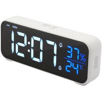 Особенности:— Современный дизайн— Возможность работы от аккумулятора/USB/сети— Яркие, заметные издали цифры— Регулируемая яркость— Запоминание настроек при отключении питания— Качественный приятный звук будильника— Встроенный термометр и гигрометр— USB-выход для зарядки гаджетов— Возможность настройки разных режимов будильника (будни/выходные)