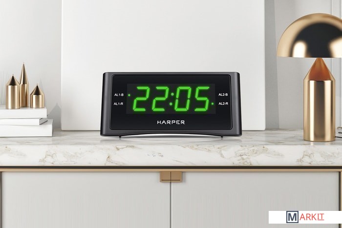 Если вам нужен не просто стильный аксессуар для спальни, но и функциональный будильник – вам определённо понравится Harper HCLK-1006. Устройство объединяет сразу несколько важных в обиходе устройств: цифровые часы, два независимых будильника, удобный ночник с гибко регулируемой подсветкой (при желании дисплей можно вообще отключить) и AM/FM-радиоприёмник (в памяти можно сохранить до 20 каналов, любой из них можно выбрать вместо стандартной мелодии будильника). Если вы любите засыпать под звуки радио, у Harper HCLK-1006 есть функция автоотключения (от 10 до 90 минут).Диапазоны тюнера FM: 64-108 МГц.Диапазоны тюнера AM: 522 – 1620 КГц.