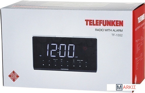 Радиобудильник Telefunken TF-1552 имеет кварцевый стабилизатор, светодиодный дисплей с высотой символов 1,4" (3,5 см), FM-тюнер, проекционные часы с синхронизацией времени на дисплее, 2 режима работы будильника (радио/сигнал), повторный сигнал будильника, таймер автоматического выключения радио, календарь, прогноз погоды, встроенный термометр, выходная мощность: 180 мВт.