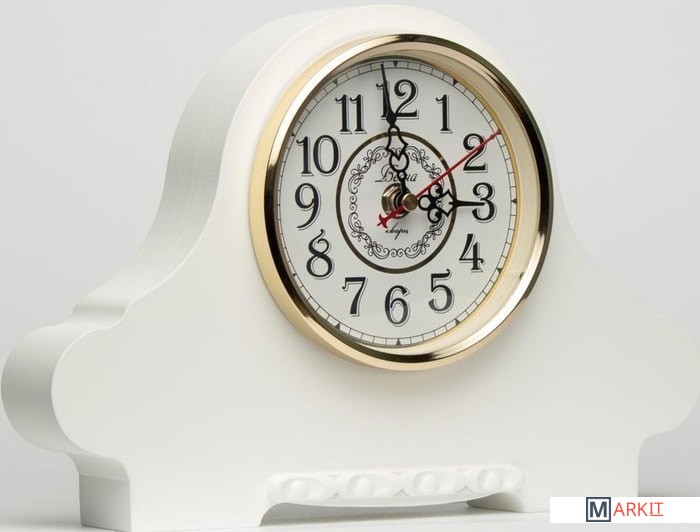 Часы имеют изящную привлекательную форму корпуса и циферблат с четкими арабскими цифрами, которые будут видны издалека. Корпус выполнен из натурального дерева, окрашенного в белый цвет. Циферблат закрыт стеклом. Установлен качественный кварцевый механизм с плавным тихим ходом. Питание от одной батарейки типа ААА (не входит в комплект).