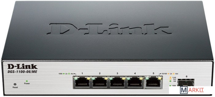Настраиваемый коммутатор DGS-1100-06/ME оснащен 5 портами 10/100/1000Base-T и 1 SFP-портом. Предназначенный для развертывания сетей Metro Ethernet, данный коммутатор выполнен в надежном корпусе и поддерживает функции Multicast для IPTV-приложений. 5 портов 10/100/1000 Мбит/с оснащены встроенной защитой от перенапряжений до 6 кВ. Наличие оптического порта SFP предоставляет возможность построения сетей FTTx.