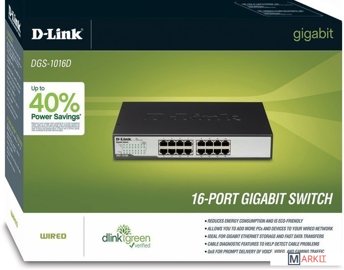 Markit » Коммутаторы » Неуправляемый коммутатор D-Link DGS-1016D