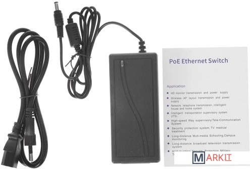 Предназначен для питания и передачи данных из одной точки, с использованием технологии Power over Ethernet (PoE) по одному кабелюИдеально подходит для создания сети IP-видеонаблюденияДальность 100 метровВнешний блок питания 48В, 2А (96Вт)