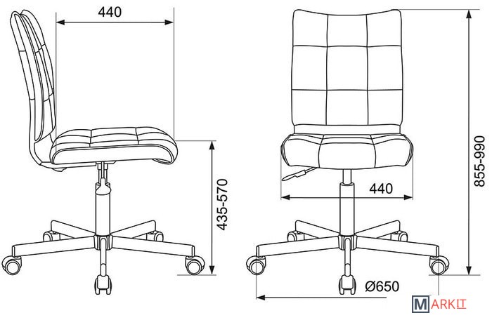 Колеса оснащены тормозом безопасности, реагирующим на изменение давления: стул не откатывается, когда вы садитесь или встаете.
