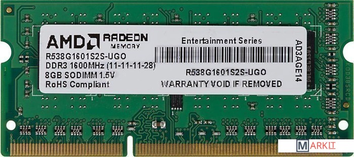 Markit » Оперативная память » Оперативная память AMD Radeon Entertainment 8GB DDR3 SO-DIMM (R538G1601S2S-UGO)