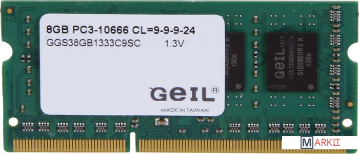 Markit » Оперативная память » Оперативная память GeIL 8GB DDR3 SO-DIMM PC3-10600 GGS38GB1333C9SC