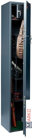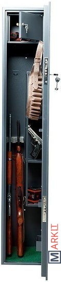 Предназначен для хранения огнестрельного оружия.- толщина металла корпуса и двери – до 2 мм- оборудован патронным отделением, запирающимся на ключ, полками и ложементами для ружей- комплектуется кодовым электронным замком PLS-3.2 (Промет) + ключевым замком- максимальная высота ствола 1140 мм- конструкция патронного отделения позволяет размещать оружие, задействуя всю высоту сейфа- наличие анкерных отверстий для крепления сейфа к стене