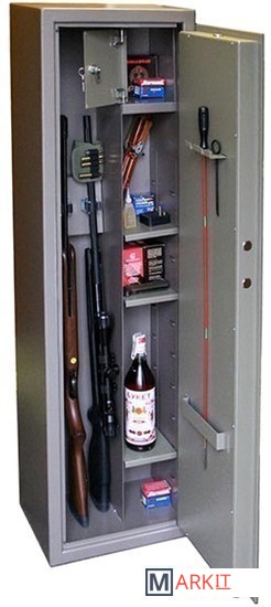 Оружейный сейф Заслон KL+KL - надежный сейф, служащий для хранения до трёх ружей, длина которых не превышает 1350 мм. Внутри сейфа имеются также отделения для патронов и боеприпасов. Этот сейф обладает устойчивостью ко взлому ГОСТ Р 50862-2005, класс 0. Модель оснащена двумя ключевыми замками с трехсторонней ригельной системой запирания. Для большей надежности производитель предусмотрел защиту замков от попыток высверливания. Сейф может крепиться как на стене, так и на полу – с помощью оригинальной системы анкеров. В последнем случае вы обезопасите себя от кражи сейфа из помещения.