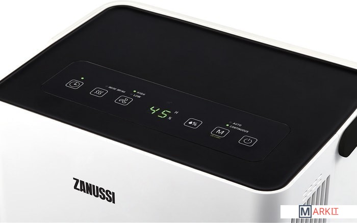 Осушитель воздуха Zanussi ZDH-25L предназначен для использования в бытовых помещениях. Благодаря встроенному гигрометру он точно отслеживает уровень влажности и своевременно запускает режим осушения. Прибор поможет вам быстрее высушить белье и очистит воздух от неприятных запахов, а также табачного дыма. Производительность осушителя — 25 л/сутки, что оптимально для помещений площадью до 30 м².Элегантная компактная модель функциональна и, практически не создавая шума, работает в 3 режимах:осушение до целевого уровня влажности;непрерывное осушение;режим AUTO.С помощью таймера можно запрограммировать время работы осушителя до автоматического отключения прибора в диапазоне от 1 до 24 часов. Кроме того, можно выбрать высокую или низкую скорость работы вентилятора, чтобы оптимизировать уровень шума. В осушителе установлен сменный угольный фильтр, который эффективно поглощает неприятные запахи и вредные химические соединения, а также табачный дым, угарный газ и формальдегиды. Специальный режим внутренней сушки необходимо включать перед длительным перерывом в работе осушителя и для профилактики образования плесени внутри осушителя. Время выполнения данной процедуры около 1 часа, но при необходимости ее можно остановить и включить необходимый режим осушения воздуха в любой момент.Параметры работы, текущий режим и уровень заполнения бака конденсатом удобно отслеживать через LED-дисплей и индикаторы на панели управления. Благодаря датчику уровня воды в приборе осушитель самостоятельно отключится, как только емкость для сбора конденсата заполнится. Индикатор наполненности бака конденсатом отображается на дисплее, а после слива конденсата индикатор гаснет, а осушитель автоматически возобновляет текущую программу.Благодаря функции непрерывного осушения прибор способен эффективно работать даже в помещениях с высочайшим уровнем влажности. Два способа сбора конденсата: в бак, а также в специальное дренажное отверстие, либо емкость при помощи шланга, делают прибор максимально удобным в использовании. Осушитель оснащен моющимся съемным нейлоновым фильтром для очистки воздуха от взвешенных частиц и защиты внутренних компонентов. Удобная складная ручка на корпусе прибора и встроенное шасси позволяют легко перемещать прибор при необходимости.