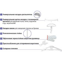 | Дополнительные насадки и приспособления | Щетка с полимерной щетиной, защитная рукавица, приспособление для отпаривания воротника. |
