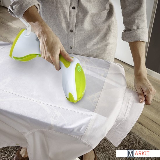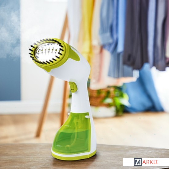 Придаст любимым вещам новый вид!Ручной отпариватель КТ-9107 позволяет быстро погладить любые изделия из текстиля, осуществляет тщательный уход за одеждой, обивкой мебели, занавесками и даже игрушками - освежает их, дезинфицирует и избавляет от запаха!Вертикальное и горизонтальное отпариваниеИспользуйте устройство в любом положении для лучшего отпаривания! Вода из резервуара подаётся в бойлер помпой (водяным насосом). Это позволяет отпаривать вещи не только вертикально, но и горизонтально.Попробуйте режим сухой глажки!В режиме сухой глажки вы можете пользоваться отпаривателем как обычным утюгом и гладить любые вещи из текстиля. Во время глажки можно дополнительно включить подачу пара. Температура поверхности доходит до 120°С.3 насадки в комплектеВ комплекте с устройством идут 3 насадки: тканевая, ворсовая и насадка для формирования стрелок. Ворсовая - чистит загрязнённые поверхности, а также убирает шерсть домашних животных и волосы. Тканевая насадка необходима при работе с деликатными тканями.Сделайте cтрелки на брюках и юбкахС насадкой для формирования стрелок станет гораздо удобнее гладить брюки и юбки. Чтобы без труда сделать "стрелки" на брюках, достаточно поместить брючное полотно между зажимом и паровым утюжком и выполнять движения "вверх-вниз".Наглядная световая индикацияНажмите на кнопку включения/выключения. Устройство начнёт нагрев, и индикатор нагрева начнёт мигать зелёным светом. После того, как нагрев завершится, индикатор будет непрерывно гореть зелёным светом.Простое управлениеЧерез 30 секунд после включения, вода нагреется и вы можете приступать к отпариванию вещи. Нажмите и удерживайте кнопку подачи пара - пар начнёт выходить из паровых сопел. А зафиксировав кнопку вверх, вы активируете режим непрерывной подачи пара!Съёмный резервуарРезервуар для воды у отпаривателя полностью съёмный, поэтому вам не составит труда наполнить его водой до необходимого уровня.Легко наполняется, надёжно закрывается!Резервуар для воды ёмкостью 260 мл оборудован специальным отверстием для залива воды внутрь отпаривателя. Оно защищено прорезиненной крышкой, чтобы вода не вытекла при работе отпаривателя. В комплекте с устройством идёт мерный стаканчик.Максимальное время работы: 8 минут.