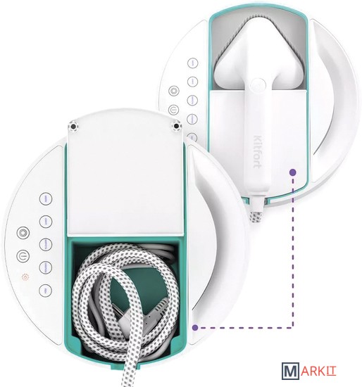Отпариватель КТ-9110 – это устройство для разглаживания изделий из текстиля с помощью потока горячего пара. Быстрый разогрев поможет провести тщательный и оперативный уход за вещами. А благодаря мощной струе пара прибор проводит чистку и дезинфекцию.Поверхность утюжка подогревается до 160°С и имеет металлическое покрытие, поэтому прибор можно использовать в режиме сухой глажки. Он оснащён помпой, что позволяет точно дозировать количество подаваемой в бойлер воды и получать устойчивую подачу пара.Предусмотрено 5 режимов подачи пара для различных типов тканей: шёлк, синтетика, шерсть, хлопок, лён. На паровом утюжке располагается кнопка подачи пара. В случае неиспользования прибора в течение 8 мин, сработает автоотключение.В комплекте прилагается насадка с микрофиброй – ей легко очищать одежду от шерсти домашних животных. Пар снимает с шерсти электрический заряд и легко убирает с одежды. Ворсовая оттирает присохшую грязь или шерсть, если она не снимается микрофиброй.Ёмкость съёмного резервуара составляет 600 мл. Такого объёма хватит примерно на полчаса беспрерывного отпаривания (на 2ом уровне подачи пара). Время нагрева составит 80 сек. Под бачком есть деминерализационный фильтр.На корпусе отпаривателя есть отсек для хранения парового шланга и шнура, закрываемый крышкой. Сам утюжок надёжно фиксируется в отверстии со специальной силиконовой подложкой, поэтому нагретый утюжок можно устанавливать туда прямо во время работы.У КТ-9110 небольшой корпус, поэтому он не займёт много места во время работы и при хранении.
