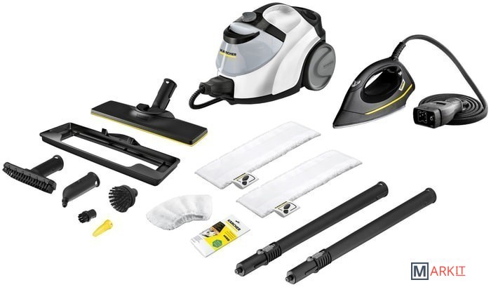 Пароочиститель белого цвета SC 5 EasyFix Premium Iron не только имеет привлекательный дизайн, но и обладает высокой мощностью: благодаря давлению пара 4,2 бара он является самым мощным пароочистителем в своем классе. 4-ступенчатая регулировка пара позволяет подстроить его количество под различные задачи по уборке. При тщательной уборке аппарат уничтожает 99,99% всех распространенных в быту бактерий на твердых поверхностях. А наличие различных аксессуаров позволяет идеально очистить и гладкие поверхности, и вытяжки, и пространство в углах и щелях. Особенно практичен входящий в комплект паровой утюг, позволяющий на 50% ускорить процесс глажения. Посредством функции VapoHydro можно включить подачу горячей воды, что поможет еще легче отделить и удалить присохшую грязь. Преимуществом напольной насадки является технология ее пластинчатой подошвы. Микроволоконная салфетка легко и не пачкая рук подсоединяется к напольной насадке с помощью крепления на липучке. Насадка для ковров быстро освежает ковровые покрытия. Бачок для воды съемный, с возможностью долива. Дополнительно в комплекте: отсек на аппарате для хранения кабеля, держатели для аксессуаров, позиция парковки для напольной насадки.