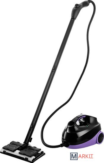 Kitfort КТ-9103 способен заменить паровую швабру, дезинфектор, стеклоочиститель, отпариватель. Горячий пар под давлением в 4 бара очищает разные поверхности, удаляет жир, известковые отложения, убивает патогенные микроорганизмы, отпаривает ткани.Скребок для стекла используется для чистки окон, зеркал, кафеля. Струйная насадка подходит для чистки плинтусов, щелей и других углов. Щётки - для удаления стойких загрязнений. С тряпкой можно отпаривать одежду, шторы, мягкую мебель. И это далеко не всё!В комплект, помимо различных насадок, входят также щётка для пола, тряпка, рамка для чистки ковров, удлинительные трубки, что делает КТ-9103 максимально универсальным устройством для очистки, глажки, дезинфекции самых разных поверхностей!Управление располагается на паровом пистолете. Вращение регулятора позволяет плавно регулировать интенсивность пара. Кнопка подачи пара располагается под пальцем. Предусмотрен блокиратор от случайного нажатия или для включения непрерывной подачи пара.Пароочиститель простой в управлении. На корпусе есть кнопка включения/выключения, индикаторы готовности пара и отсутствия воды.В комплекте с пароочистителем идёт мерный стакан для удобного добавления воды в бойлер.При отпаривании вам может понадобиться держатель для одежды. Откройте крышку отсека для принадлежностей и вставьте удлинительную трубку. На неё установите держатель для одежды.Длина шнура 2,8 м. Излишки вы всегда можете намотать на держатель шнура. Паровой пистолет можно убирать в специальное отверстие на передней части корпуса пароочистителя.