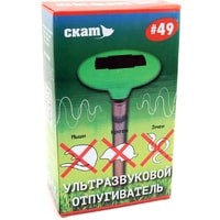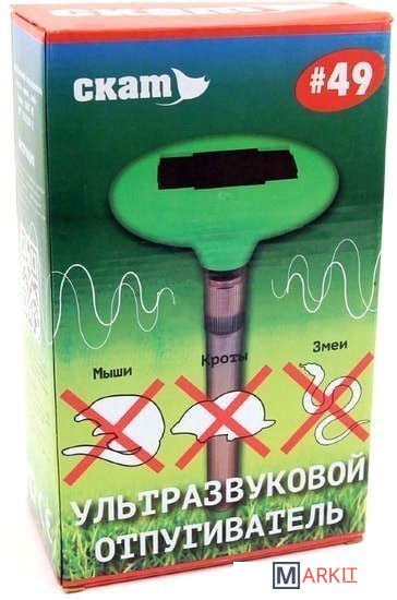 Ультразвуковые отпугиватели СКАТ наиболее эффективные устройства для борьбы со змеями, кротами, полевыми мышами, землеройками.Отпугиватель СКАТ 49 эффективно отпугивает всех земляных грызунов и змей на площади до 800 квадратных метров. При использовании нескольких устройств на одном участке, отпугиватели рекомендуется устанавливать на расстоянии 20…30 метров друг от друга.СКАТ 49 имеет встроенную подсветку, которая автоматически включается при заходе солнца.