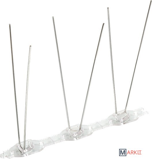 Шипы антиприсадные созданы для отпугивания птиц, не позволяя сесть на защищаемую устройством территорию. Быстро и легко устанавливаются, не требуют электроэнергии и долговечно. Иглы выполнены из стали, защищённой от коррозии. Основание секций выполнено из устойчивого к низким и высоким температурам полимера.