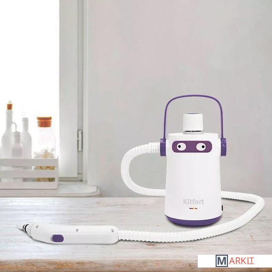 Пароочиститель Kitfort КТ-9109 способен заменить дезинфектор, стеклоочиститель и отпариватель для тканей. Главное преимущество пароочистителя — прибор безопасен для здоровья человека и не приносит вреда окружающей среде.Вы можете использовать пароочиститель как с насадками, так и без насадок. Для подсоединения струйной насадки установите ее на паровое сопло пистолета до упора и поворачивайте кольцо струйной насадки справа налево для фиксации.Все необходимые насадки уже в комплекте. Они быстро вернут сияющий блеск вашей плите или варочной поверхности, помогут добраться до труднодоступных мест и многое другое.В комплекте с пароочистителем идёт мерный стакан и воронка для удобного добавления воды в бойлер. Ёмкость бойлера составляет: 0,3 л.Пароочиститель Kitfort КТ-9109 обеспечивает деликатную глажку вещей. На овальную насадку надевается насадка из микрофибры, которая хорошо впитывает влагу, что очень удобно при отпаривании одежды.Пароочиститель очень компактный и лёгкий. На корпусе есть ручка для переноски. Наша техника порадует вас интересным дизайном. В любой момент вы можете отклеить креативный стикер «глаза» без вреда для поверхности.В пароочистителе предусмотрен блокиратор от случайного нажатия кнопки подачи пара. Чтобы включить подачу пара, сдвиньте блокиратор в сторону открытого замка, и нажмите на кнопку подачи пара. Силой нажатия можно регулировать интенсивность подачи пара.Горячий пар под давлением может удалять грязь, жир и известковые отложения с различных поверхностей, убивать бактерии и домашних клещей. Пароочиститель очищает паром без добавления бытовой химии, что является отличным выбором для аллергиков.Пароочиститель КТ-9109 имеет небольшой вес и габариты. В комплекте с устройством прилагаются насадки для разнообразных видов уборки.