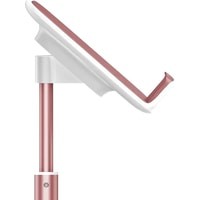 Подставка для планшета оборудованная телескопической конструкцией для регулировки высоты и фиксатором для кабеля.