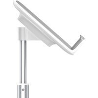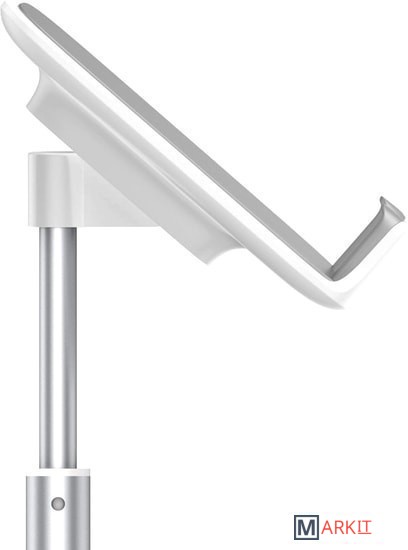 Подставка для планшета оборудованная телескопической конструкцией для регулировки высоты и фиксатором для кабеля.