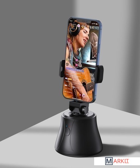 Держатель для смартфонов с диапазоном зажима устройств от 56 до 83 мм. Поддержка устройств на базе Android 8.1+/iOS 12.4+.Для питания держателя используется три батарейки стандарта AA (в комплект поставки не входят).Главной особенностью устройства является наличие функции автоматического снимка и потоковой передачи видео в реальном времени.Поддерживаемые сервисы: Facebook, lnstagra, Youtube, Tiktok, Twitter и Snapchat.Кроме того, данный держатель оснащен механизмом горизонтального вращения на 360° и продольного поворота вверх или вниз на 37°. Устройство можно применять как в настольном варианте, так и использовать в качестве головы-держателя с резьбовым креплением 1/4".