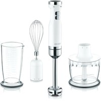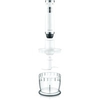 до 13000 об / минБлендер с 4 лезвиями из нержавеющей стали и функцией защиты от брызг.Бесступенчатая регулировка скорости с регулировкой щелчков, дополнительная функция турбо.Защита от детей.Пластиковая чашка 700 мл (без BPA), венчик, измельчитель. Можно мыть в посудомоечной машине.