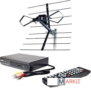 Комплект оборудования, включающий в себя всё необходимое для перехода на современные стандарты телевидения - DVB-T и DVB-T2. В набор входят DVB-T/DVB-T2 ресивер (цифровой приемник) с пультом дистанционного управления, необходимые для подключения к телевизору кабели, наружная антенна и кронштейн.