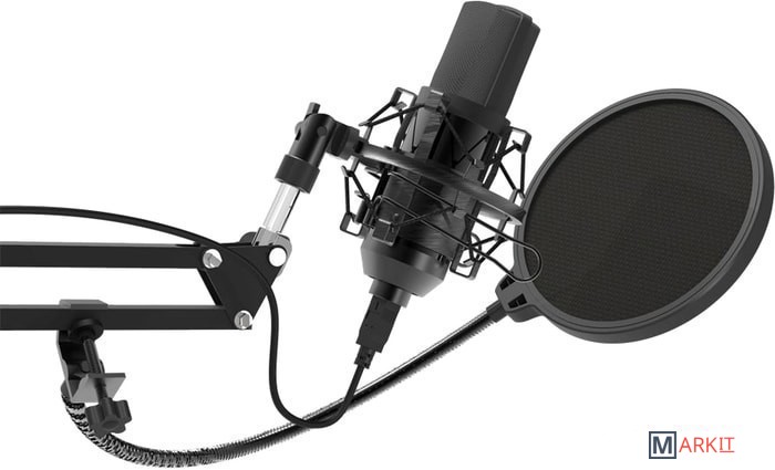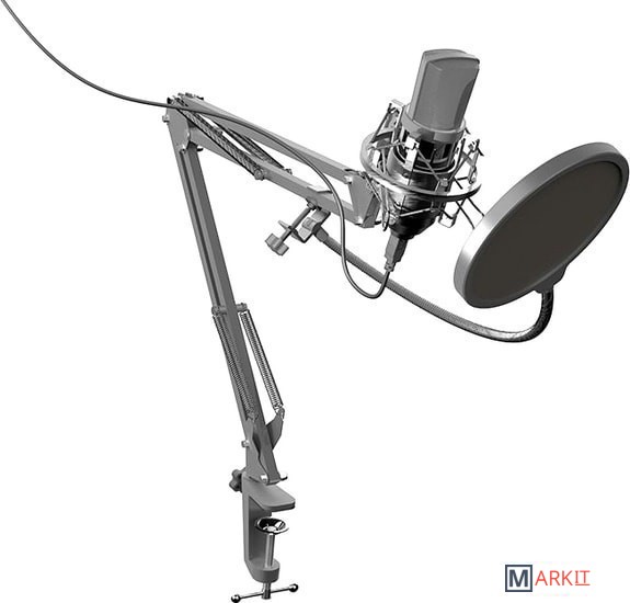 Комплект поставки - стойка-пантограф со струбциной- антивибрационный держатель- поп-фильтр- документация