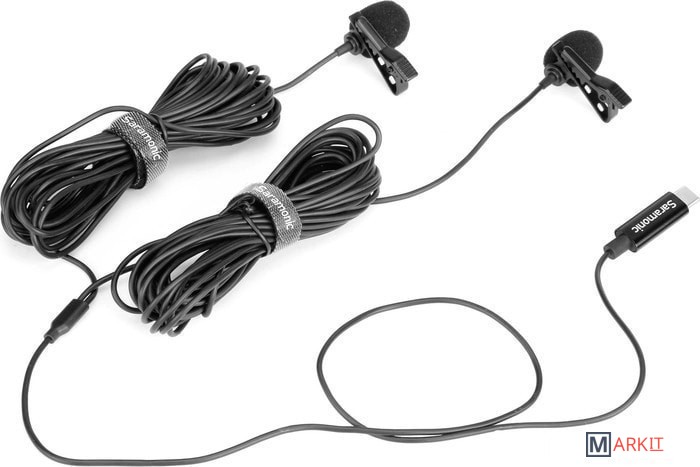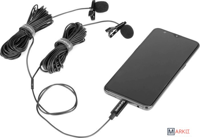 Два петличных микрофона с возможностью подключения по одному кабелю.