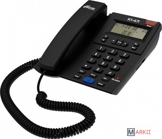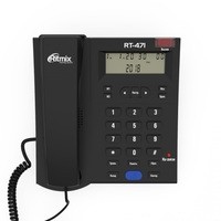 Ritmix RT-471 — это отличный телефон с дисплеем и определителем номера по доступной цене. Он идеален для использования в офисе, на производстве, дома – надёжный и удобный.RT-471 обладает всеми базовыми телефонными функциями, в числе которых спикерфон, повтор номера, автодозвон, сохранение номеров в памяти. Возможен однокнопочный и двухкнопочный набор номеров. Дополнительные функции включают календарь, часы на дисплее и будильник.