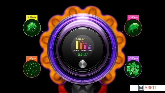 Пьезоэлектрический датчик непрерывно измеряет и подсчитывает частицы пыли, при необходимости автоматически увеличивая мощность всасывания.В комплекте:- насадка с прямым приводом- насадка с мягким валиком и встроенным лазером- щелевая насадка- комбинированная насадка- мини-электрощетка- док-станция- адаптер для уборки труднодоступных мест- крепление насадок на трубу