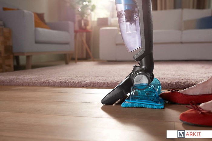 Уникальная система влажной уборки контролирует количество поступающей воды во время всего процесса уборки твердых напольных покрытий.