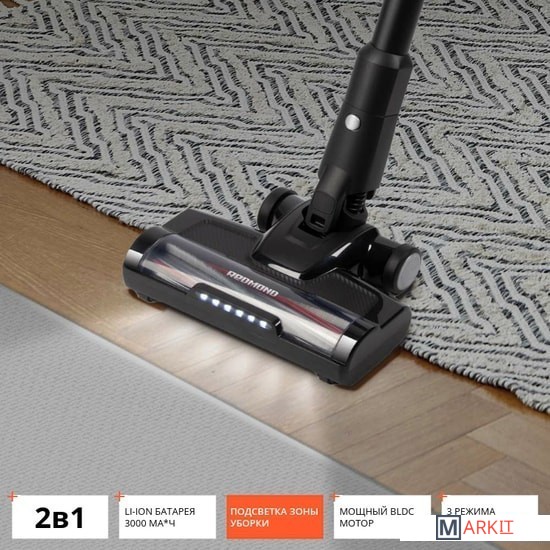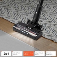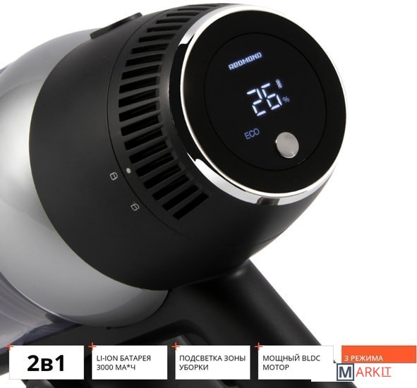 Универсальное применениеRV-UR375 – эргономичная модель, которая из вертикального пылесоса легко трансформируется в ручной компактный пылесос. Устройство не требует подключения к сети, укомплектовано разнообразными насадками и дополнительным гибким шлангом, за счет чего обладает неограниченным радиусом действия и может использоваться для широкого спектра задач:уборки пола и ковровых покрытий,очистки мягкой мебели и домашнего текстиля,уборки карнизов, лестниц, высоких полок, антресолей,ухода за салоном и багажником автомобиля,уборка в труднодоступных и узких местах.Высокая производительностьМощный бесщеточный BLDC-двигатель и литий-ионный аккумулятор 3000 мА*ч обеспечивает высокую производительность пылесоса. RV-UR375 может работать без подзарядки до 75 минут, благодаря чему вы сможете с комфортом навести чистоту даже в просторной квартире.Электронный дисплейОсобенность модели – электронный светодиодный дисплей, который отображает уровень заряда аккумулятора и выбранную мощность. Индикаторы на дисплее также сообщат вам об ошибке установки или отсутствии фильтров, блокировки турбощетки и заполнении контейнера-пылесборника.Регулировка мощностиС помощью кнопки переключения выберите подходящий режим работы:ECO – минимальная мощность всасывания с экономным расходом батареи для продолжительной уборки.MID – средняя мощность всасывания для устранения загрязнений умеренной сложности.MAX – максимальная мощность всасывания для интенсивной очистки ковровых покрытий.AUTO – автоматическая регулировка мощности всасывания в зависимости от степени загрязнения поверхности.Расширенный комплект насадокБольшой выбор сменных насадок позволит эффективно очистить разные зоны. Турбощетка с встроенной подсветкой обеспечит удобную и качественную уборку в местах с недостаточным освещением: под мебелью, в кладовых. Щелевая насадка поможет убрать грязь и пыль с плинтусов и из узких проемов, насадка со щеткой предназначена для одежды, мягкой мебели, автомобильных кресел и домашнего текстиля.Контейнер-циклонПыль и сор, которые попадают в контейнер, под воздействием мощного циклонного потока воздуха остаются в пылесборнике. После уборки его легко отсоединить и очистить.Удобное хранениеВ комплектацию включен кронштейн, позволяющий крепить RV-UR375 к стене в вертикальном положении для зарядки и хранения. Так пылесос занимает минимум места и всегда находится под рукой.
