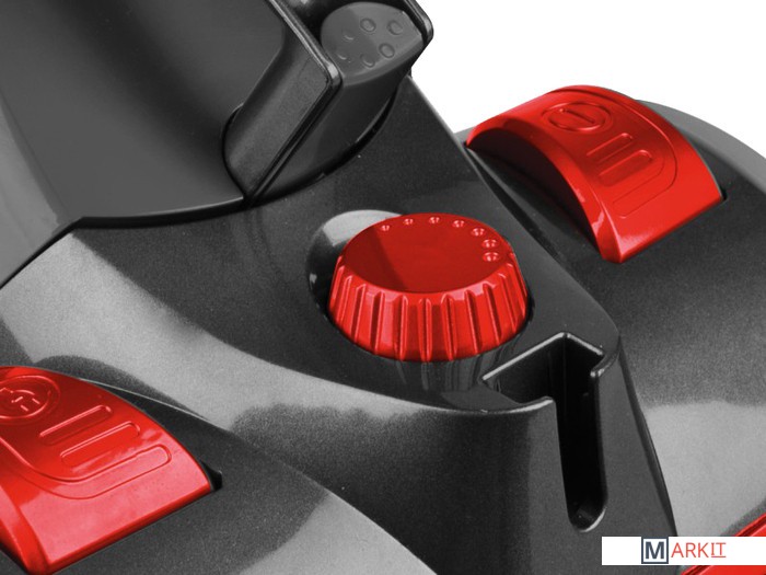 Место для «парковки» щётки, микропоролоновый выходной фильтр, фиксатор контейнера-пылесборника, контейнер-пылесборник, гибкий шланг, фиксатор регулировки длины телескопической трубки, переключатель «пол/ковёр», сепаратор, фиксатор нижней крышки, комбинированная щётка.
