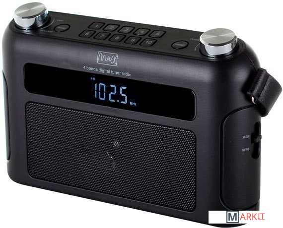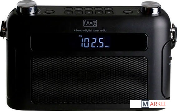 Радиоприёмник MAX MR-310T оснащен мультитюнером, который работает с радиостанциями частотных диапазонов FM, SW, MW и LW. Настройка на радиостанцию осуществляется с помощью цифровой шкалы.Помимо бытовой электросети (220 вольт) приёмник MAX MR-310T может работать от батареек. Эта модель использует четыре элемента LR14 (тип -С-, напряжение 1,5 вольта). Такие элементы питания можно приобрести в любом магазине.Мультиформатный тюнер настраивается вручную или в автоматическом режиме. При этом в память приёмника можно записать до 40 -адресов- понравившихся станций, по 10 на каждый диапазон от FM до LW.Модель MR-310T может работать в зоне неустойчивого приёма FM сигнала. Этот радиоприёмник укомплектован телескопической антенной, улучшающей качество транслируемого сигнала.