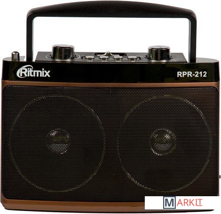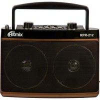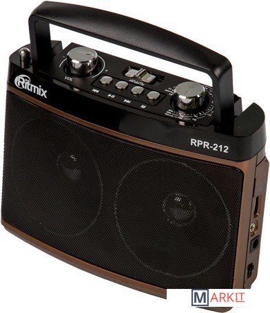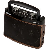 Ritmix RPR-212 – портативный трёхдиапазонный радиоприёмник, охватывающий в том числе и FM-диапазон. Дополнительная функция RPR-212 – воспроизведение mp3-файлов с карт памяти или USB-флэшки. Радиоприемник снабжен встроенной батареей.
