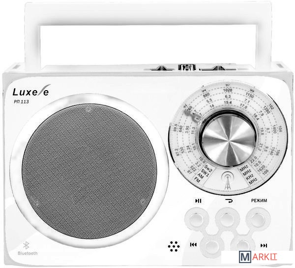 Стильный радиоприемник LUXELE РП-113 предназначен для приема радиовещательных станций в диапазоне FM-AM-SW1-2. Поддерживает воспроизведение с карт памяти типоразмера SD и microSD, подключение по Bluetooth, оснащен аудиовходом. Питание организовано как от сети, так и от встроенного аккумулятора; также предусмотрена установка батарей типа D на случай разрядки аккумулятора.