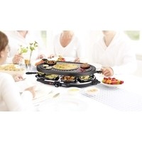 | Комплектация | - 1 съемная панель- 8 противней для раклета- 8 деревянных лопаток |