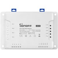 Sonoff 4CH (R3) - это обновленная версия Sonoff 4CH (R2). В настоящее время Sonoff 4CH (R2) снята с производства. В версии Sonoff 4CH (R3) изменен внешний вид и улучшены конструкционные особенности. К примеру: Sonoff 4CH (R3) стал более «компактным», и получил более удобный доступ к креплению проводов. Так же стоит обратить внимание и на другое новое улучшение в Sonoff 4CH (R3) по сравнению с версией Sonoff 4CH (R2) – для удобства использования в Sonoff 4CH (R3) Вы сможете установить все 3 рабочих режима в приложении «eWeLink».Sonoff 4CH (R3) - это умное 4-канальное Wi-Fi реле которое позволит Вам одновременно управлять четырьмя разными устройствами. Приобретая Sonoff 4CH (R3) Вы получаете функционал четырех базовых модулей Sonoff с Wi-Fi в одном устройстве и под единым управлением.Кроме того Sonoff 4CH (R3) имеет возможность для монтажа на DIN-рейку. Корпус Sonoff 4CH (R3) специально предназначен для установки на DIN-рейку - на корпусе имеются специальные удобные защелки для DIN рейки! DIN-рейка - это стандартизированное металлическое крепление, общепринятое для установки промышленного электрооборудования в специальных монтажных ящиках. Эти рейки, как правило, изготавливаются из углеродистой стали с цинковым покрытием и имеют стандартный типоразмер, подходящий и для этого модуля.Управление Sonoff 4CH (R3) может происходить как через приложение «eWeLink» установленное на Вашем телефоне или планшете, так и с помощью голосового управления через Amazon Alexa или Google Assistant.Вместе с поддержкой «умных сцен» можно настроить, чтобы включая это устройство, также включалось множество других умных Wi-Fi устройств. Для ситуаций, когда Wi-Fi не работает, предусмотрено управление через локальную сеть.Sonoff 4CH (R3) так же является открытым и простым для разработчиков электронных устройств. Доступны исходные коды всех прошивок, которые Вы можете переделывать, дополнять по Вашему усмотрению, и с лёгкостью обновлять прошивку в купленных Вами устройствах Sonoff. Устройство сделано на основе Wi-Fi микроконтроллера ESP8285, для которого Вы так же можете найти открытую и полную документацию.Для управления Sonoff 4CH (R3) Вы можете бесплатно скачать приложение «eWeLink» для устройств Apple из App Store и для устройств Android из Google Play. Приложение «eWeLink» работает через любое интернет соединение.- Кол-во каналов: 4 шт.;- Максимальный ток нагрузки: 15A (все подключенные устройства)/10A (1 подключенное устройство);- Максимальная мощность: 3500W (все подключенные устройства)/2200W (1 подключенное устройство);- Протоколы безопасности: WEP/WPA-PSK/WPA2-PSK;- Габаритные размеры: 145х90х34 мм.