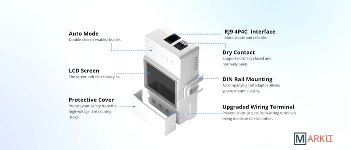 Sonoff TH Elite THR320D - это умное Wi-Fi реле, с функцией мониторинга температуры и влажности (датчики приобретаются отдельно), которое позволяет удаленно контролировать и устанавливать температуру и влажность, для включения/выключения электроприборов.Совместимые модели датчиков: Sonoff DS18B20, Sonoff Si7021, Sonoff AM2301, Sonoff MS01. Но для использования этих датчиков необходимо дополнительно использовать переходник-адаптер Sonoff AL010.Напряжение питания 100-240 В, 50/60 ГцКоммутируемый ток 20 АКоммутируемая мощность 4400 Вт (резистивная нагрузка)Поддерживаемый тип датчика DS18B20, AM2301, Si7021, THS01 до 60 м.Разъем подключения датчика RJ-9 (телефонный разъем 4P)Частота Wi-Fi 2.4GHz (IEEE 802.11 b/g/n)Рабочая температура -10 °C- 40 °CВлажность 5% -95%Материал корпуса PC V0 (трудно горючий пластик)Размер 98x54x31 мм