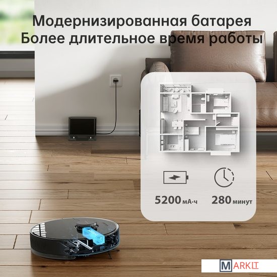 Комплектация Робот-пылесосРезервуар для воды с тряпкойБазовая станцияЗапасная боковая щеткаИнструмент для очисткиКабель питания